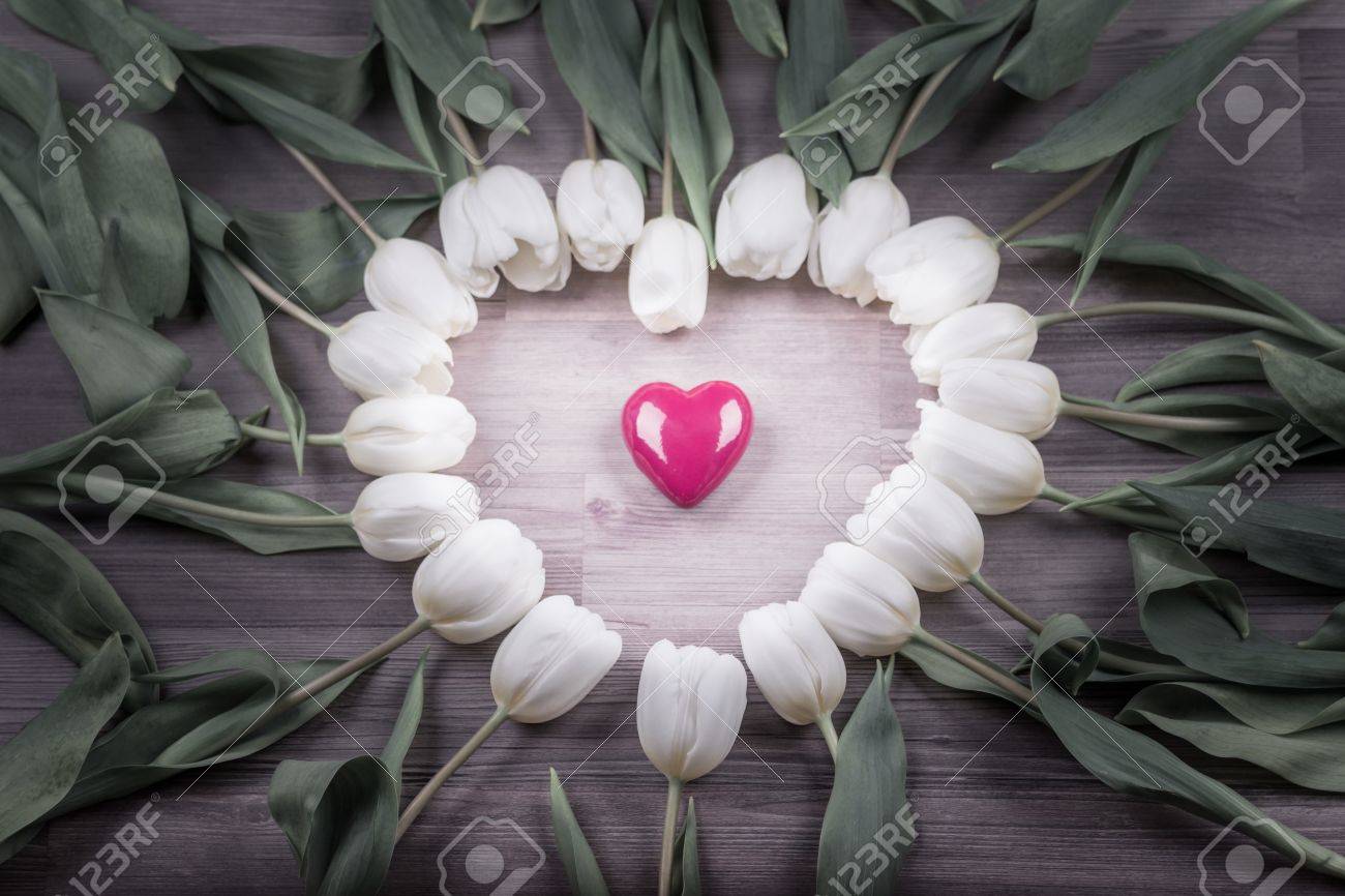 Liebe Rosa Herz Von Tulpen Schone Uberraschung Geschenk Fur